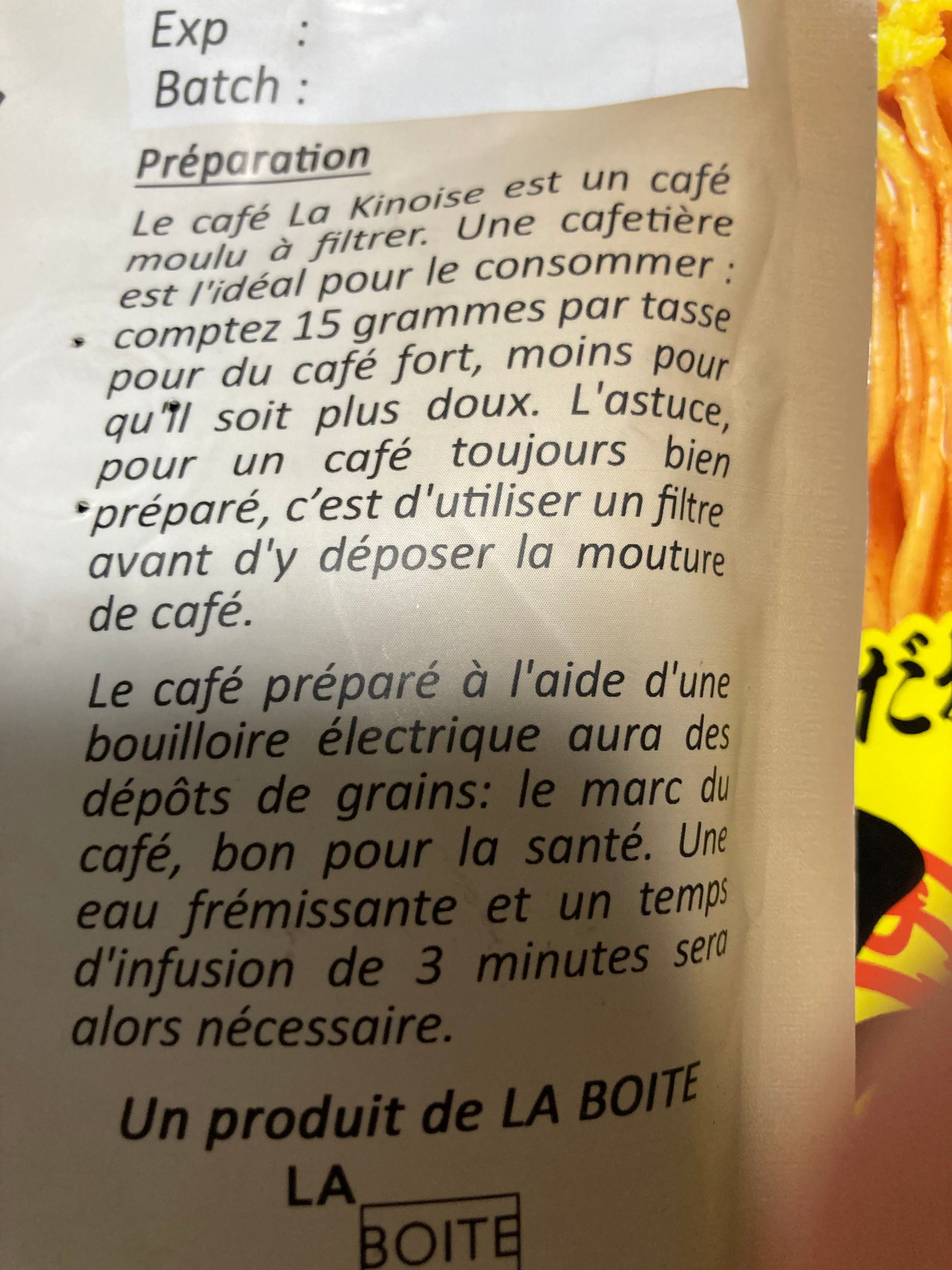 準備 ラ・キノワーズコーヒーはフィルターで淹れるタイプのコーヒーです。コーヒーメーカーで淹れるのが理想的です。1杯あたり15gのコーヒー豆を使用すると濃いコーヒーになり、それ以下だと軽いコーヒーになります。美味しく淹れるコツは、コーヒーの粉を入れる前にフィルターを使うことです。 電気ケトルで淹れる場合 電気ケトルでコーヒーを淹れると、コーヒー豆のかすが沈殿します。これはコーヒーの残りかすで、健康に良いものです。沸騰したお湯で3分間蒸らす必要があります。
