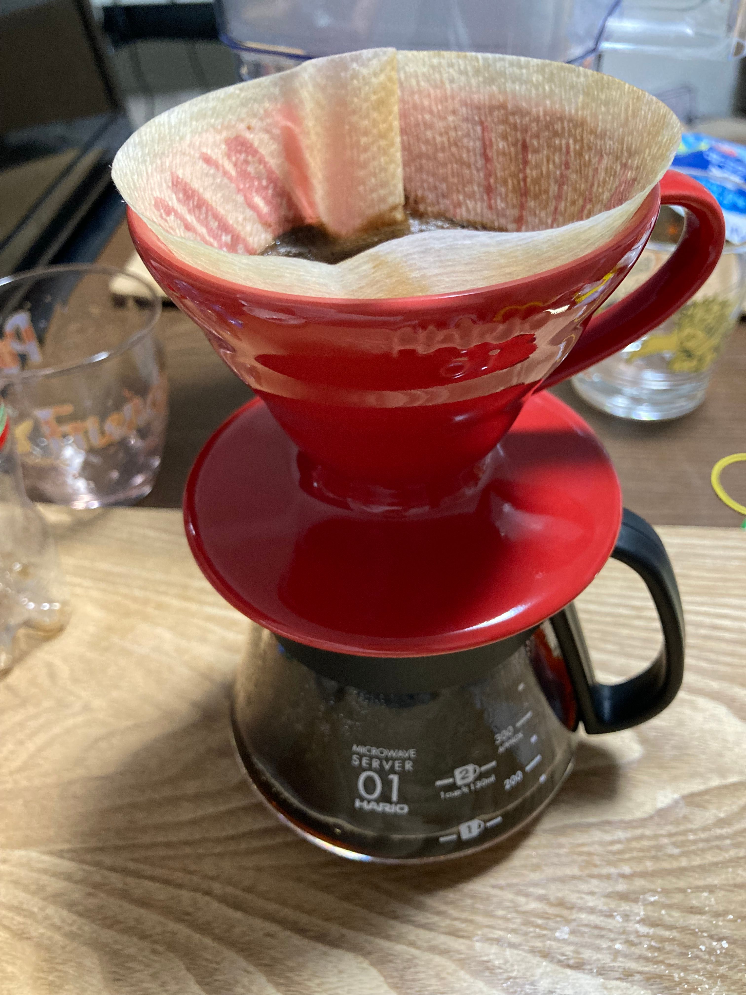 何も知らない・違いもわからない自分としては、器具は一旦食洗機対応であればなんでもよかったため、見つけた中で唯一食洗機に対応していたharioのv60のコーヒーサーバーとドリッパ、フィルターを購入しました。