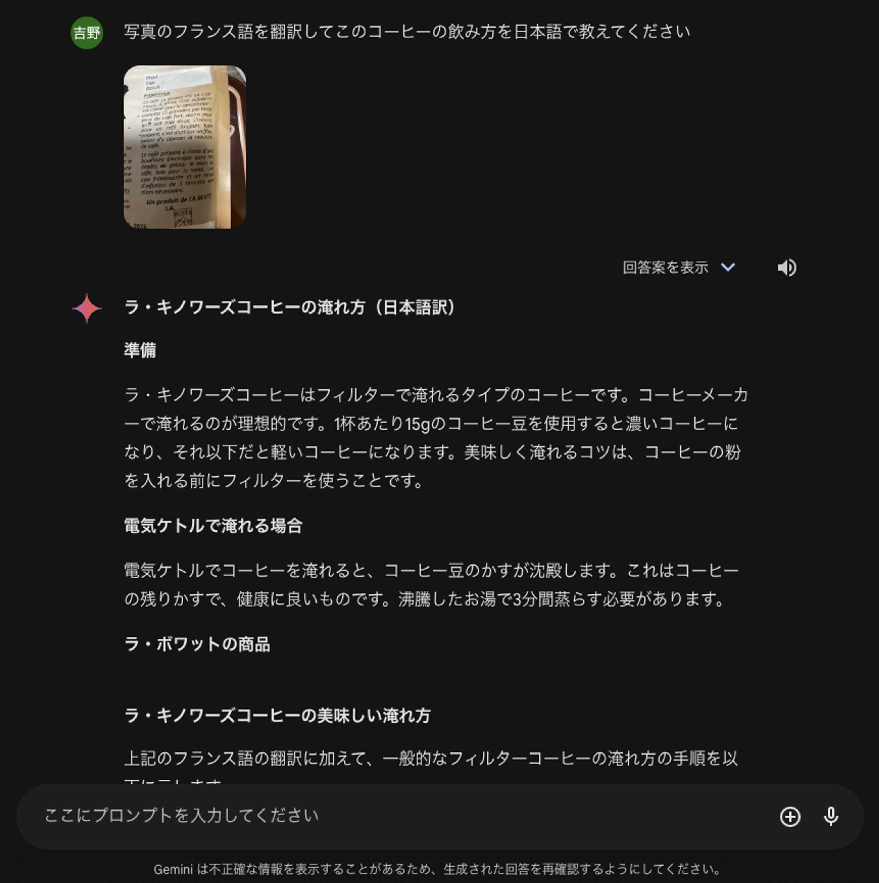 自分は大学で第二外国語としてフランス語を選択していたため、まぁ余裕で読めるやろ!と思いましたが、手順を間違えて不味くなっても嫌だったため大人しくGeminiさんに読んでもらいました。